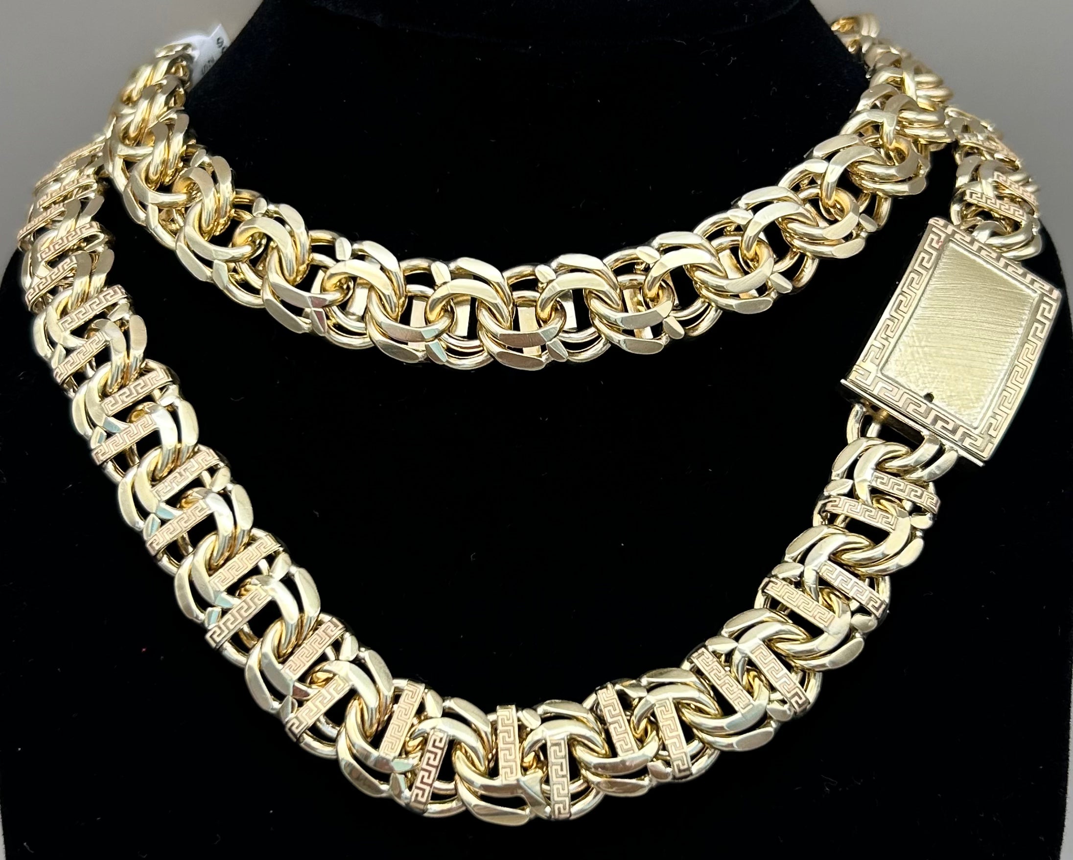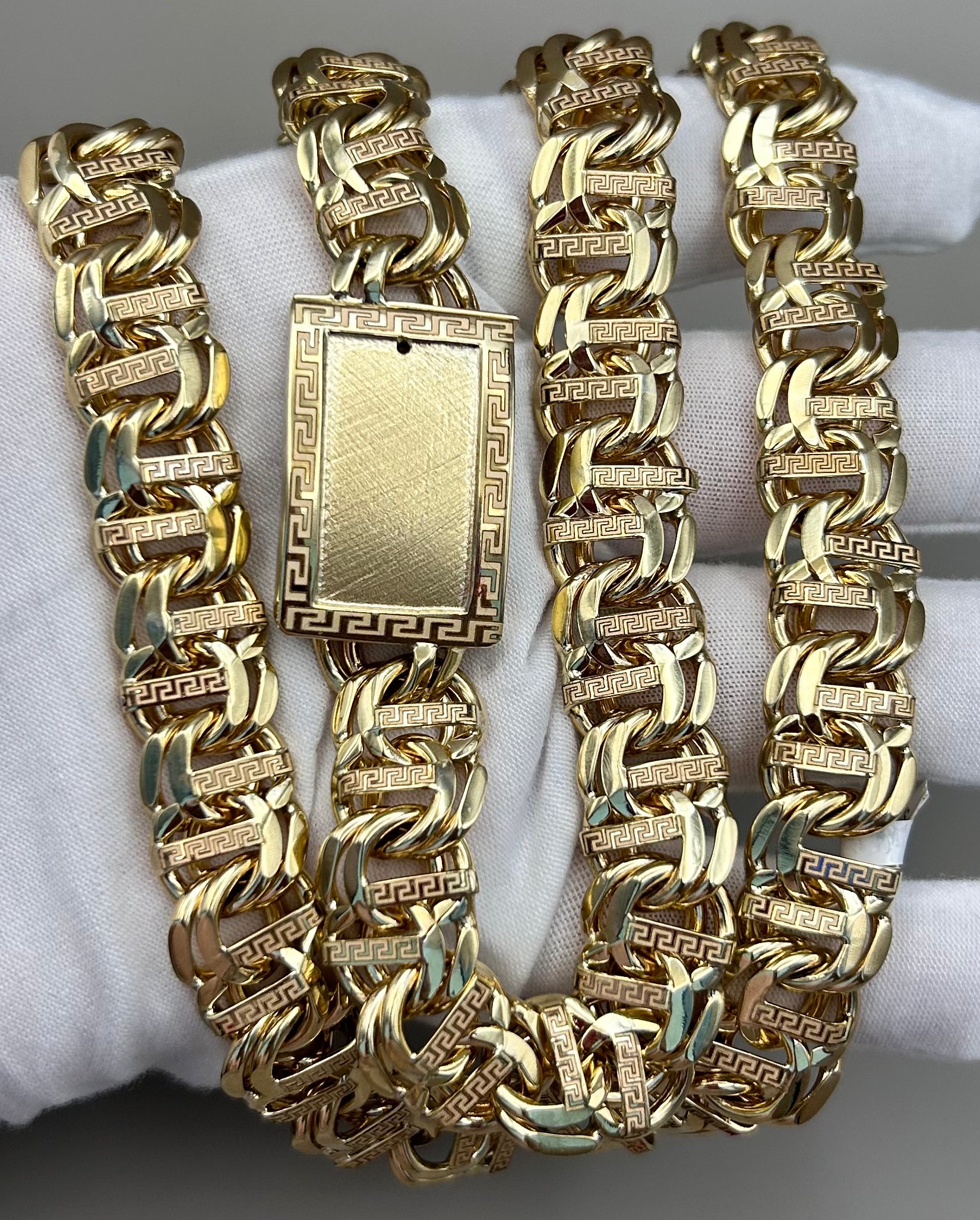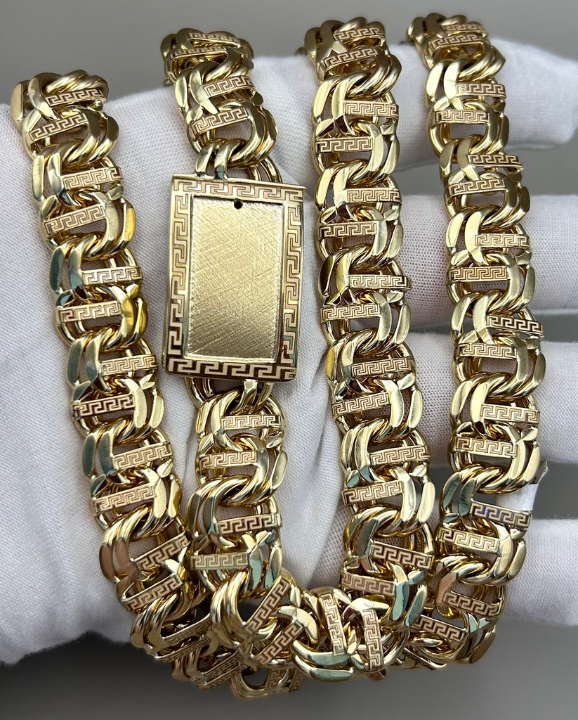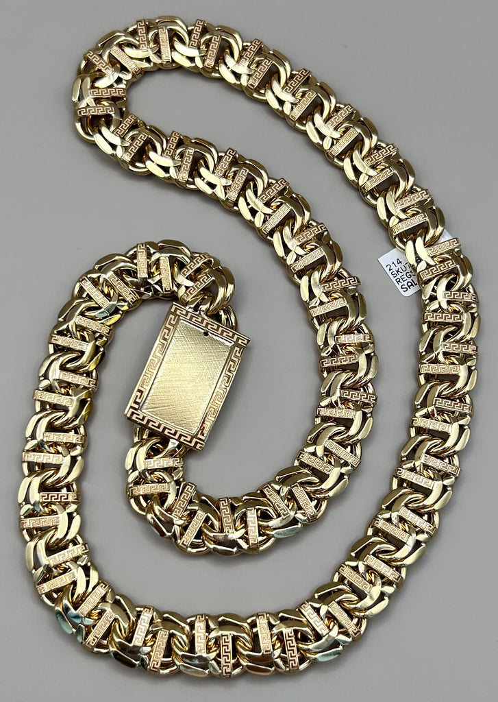 10KT Solid Gold Chino Link Bar Chain 214 Grams 26 inches 15mm
