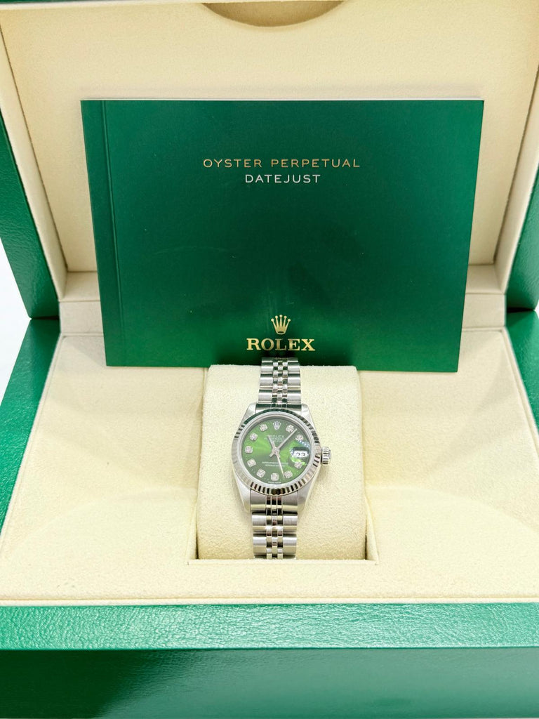 Rolex Pre Owned Ladies 26mm DateJust Green Diamond Dial-1991
