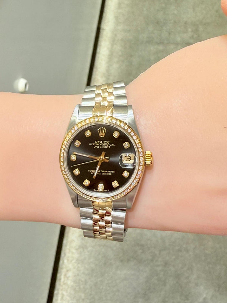Rolex PreOwned 31mm Ladies DateJust Black Diamond Dial -1988