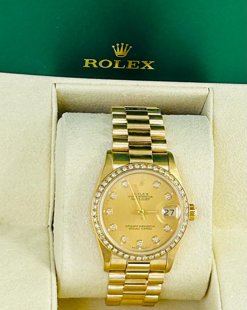Rolex Pre Owned Ladies 31mm DateJust Presidential Champagne Diamond-1984