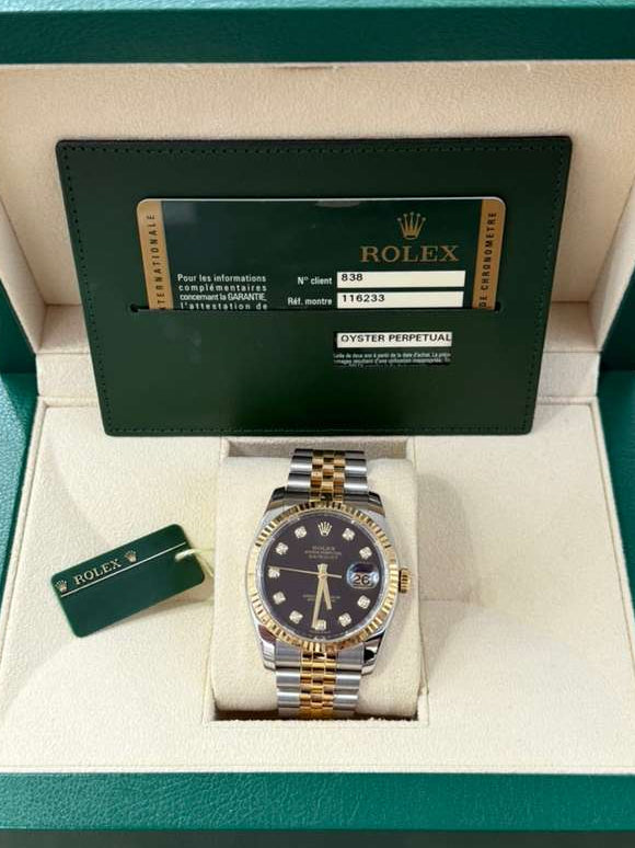 All Original Factory Rolex 36mm DateJust Black Diamond Dial-(W/Card)