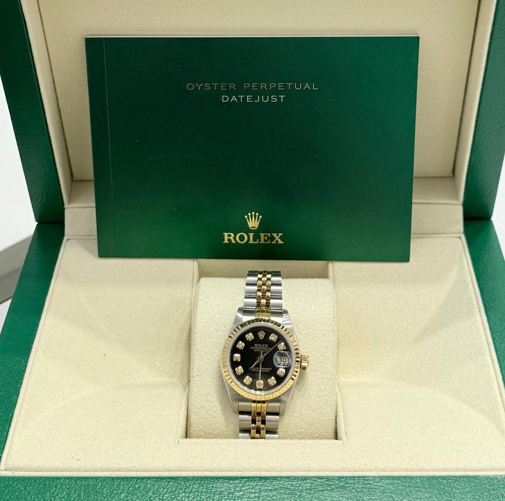Ladies PreOwned Rolex 26mm DateJust Black Diamond Dial -With Card-2004