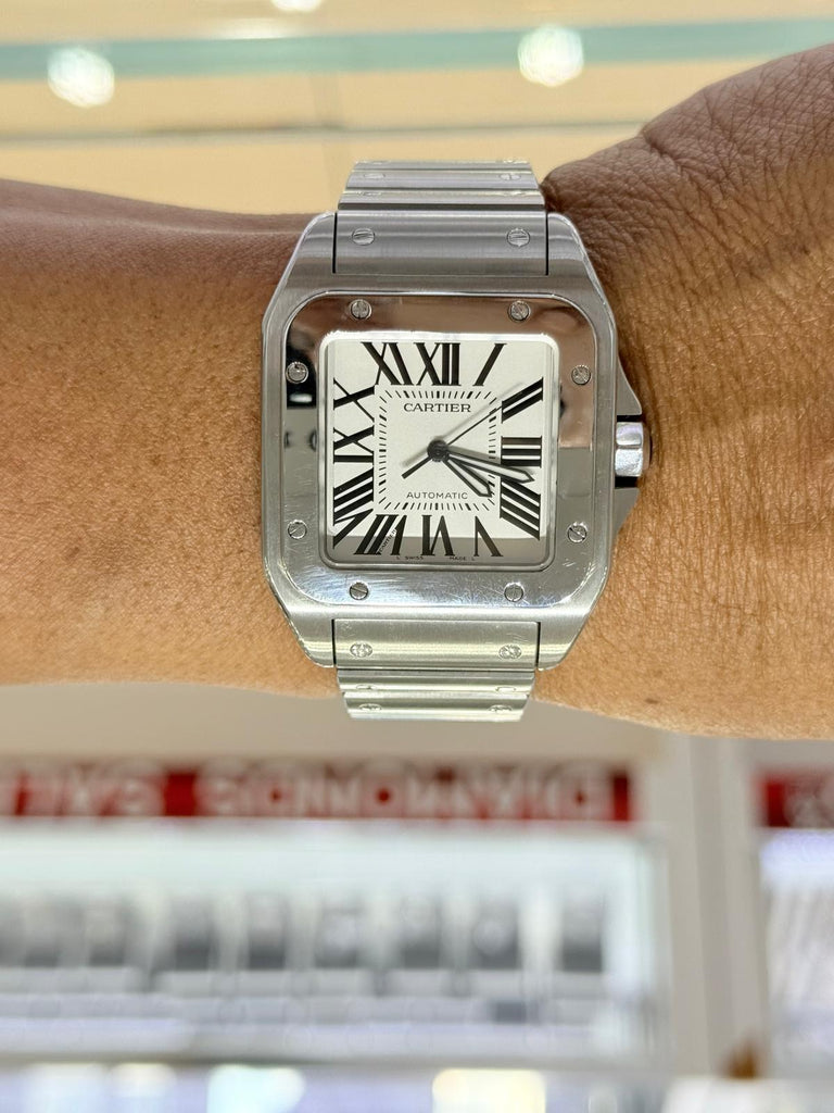 Pre Owned Santos De Cartier XL Watch Black Roman Dial