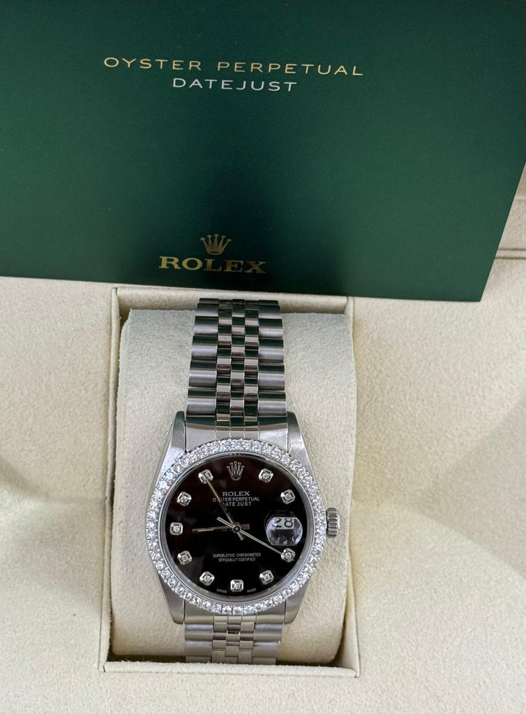 Rolex Pre Owned 36mm DateJust Black Diamond Dial- Quickset-1982