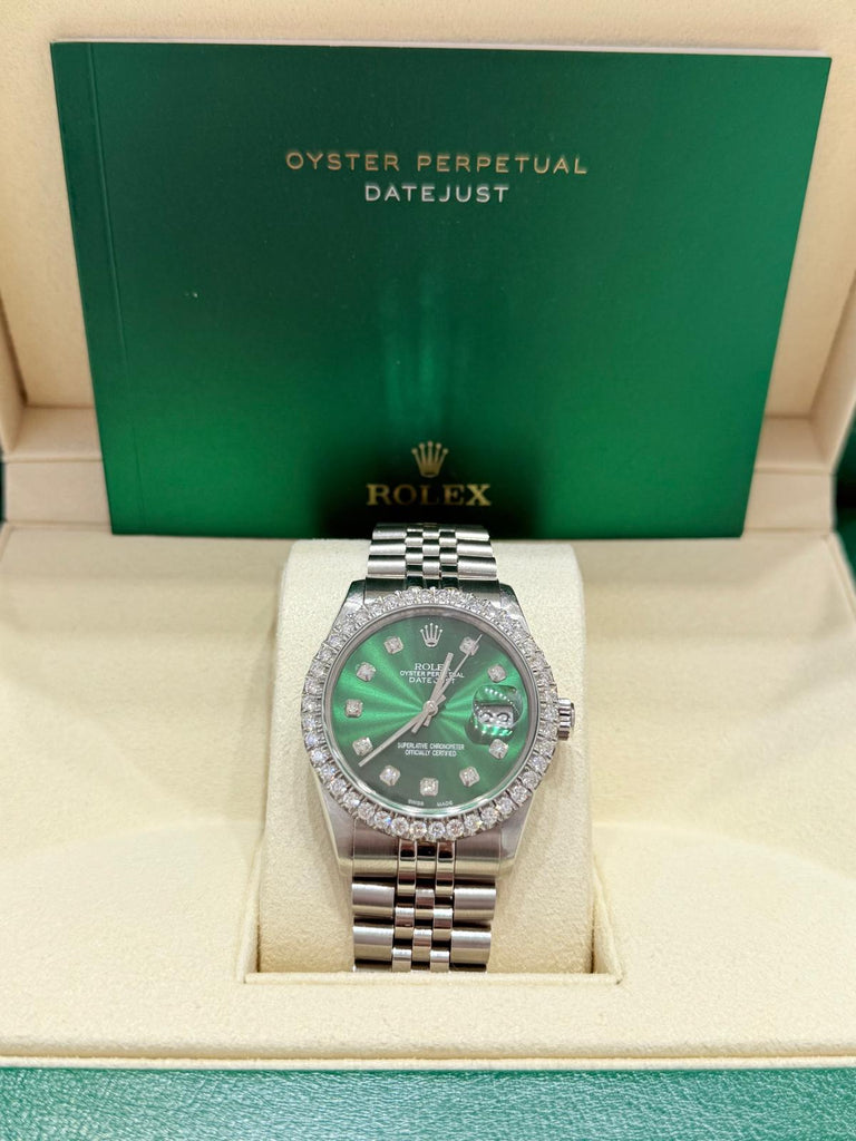 Rolex Pre Owned 36mm DateJust Green Diamond Dial- Quickset -1982