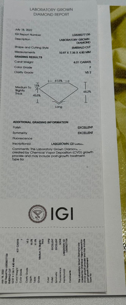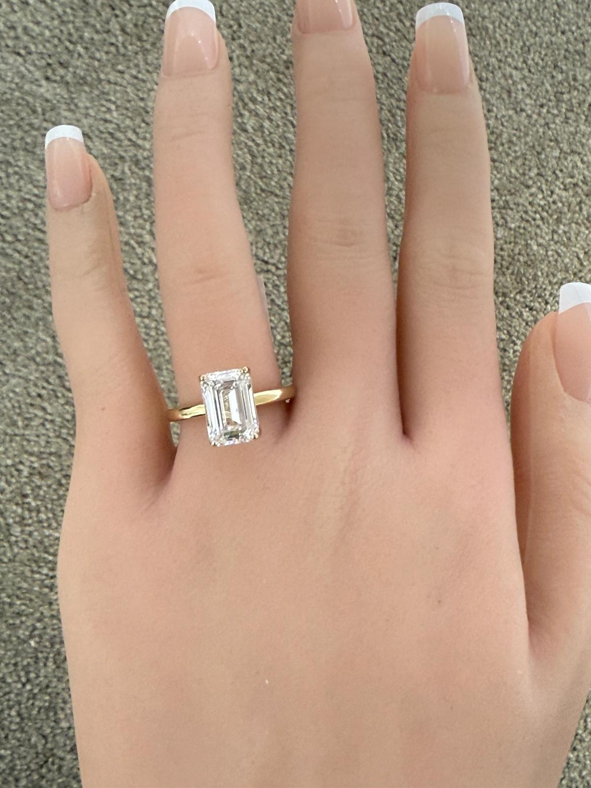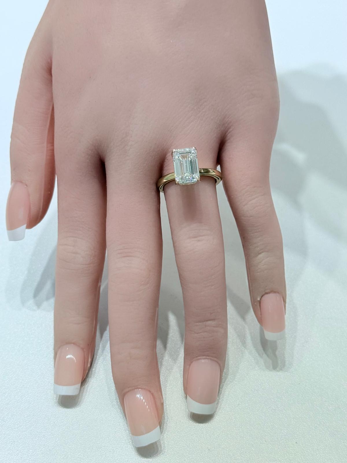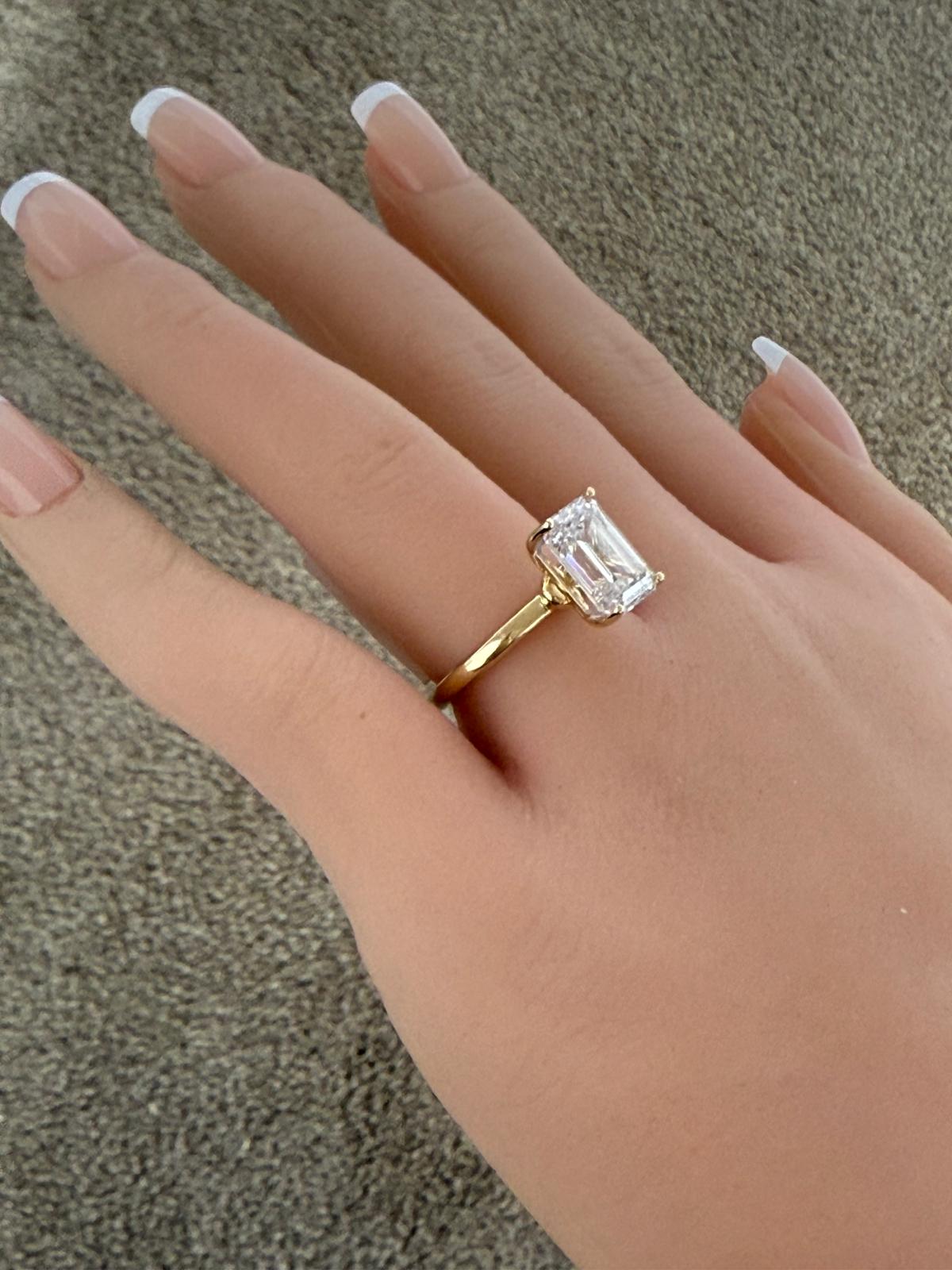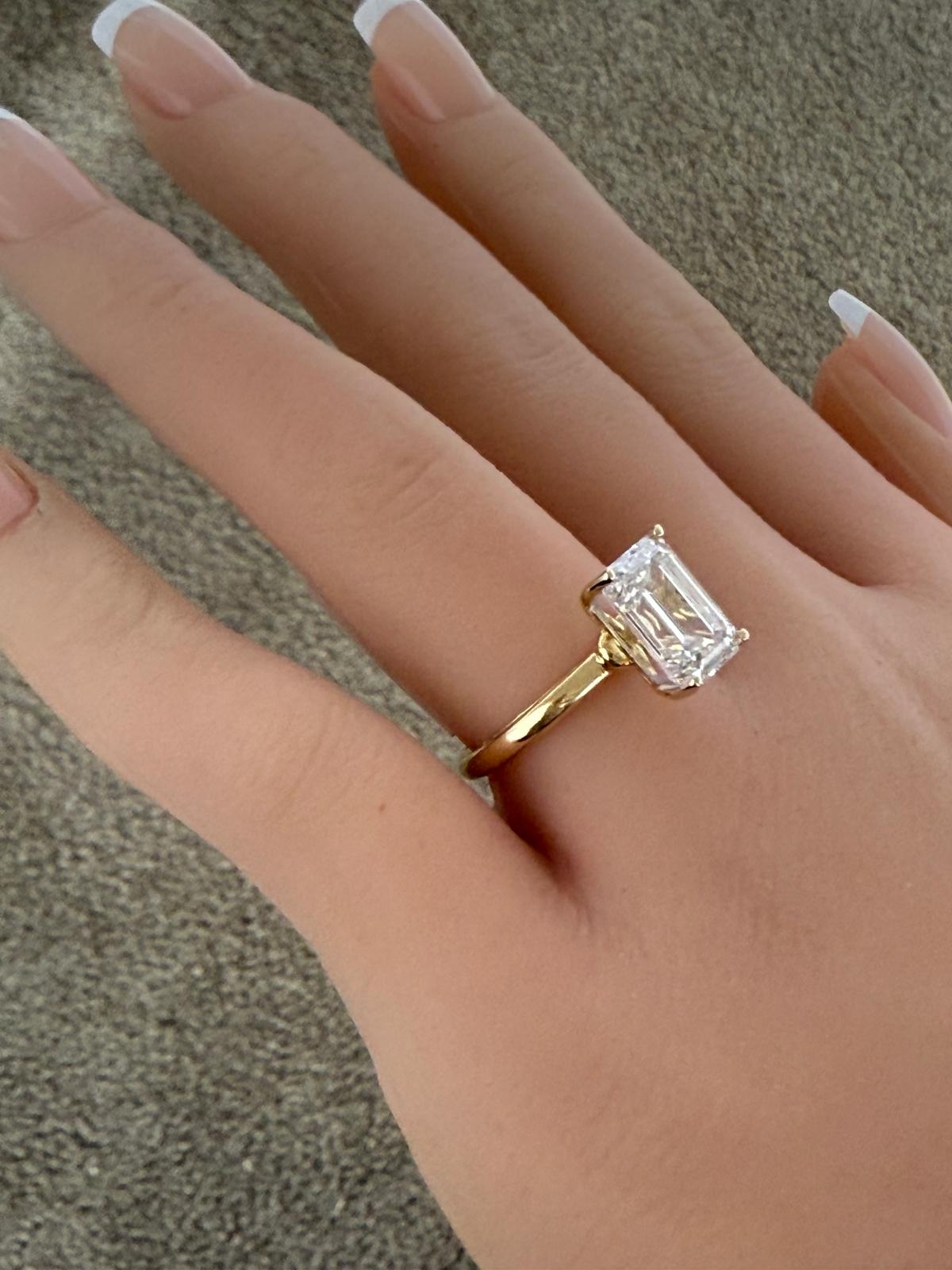 14KT VS2 4.01CTW Solitaire Emerald Lab Diamond Engagement Ring - IGI Certified