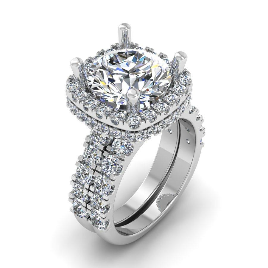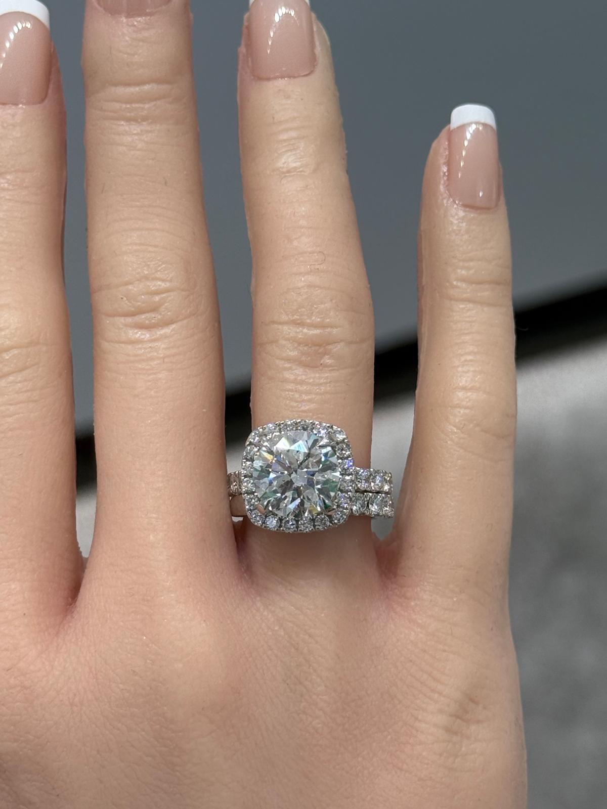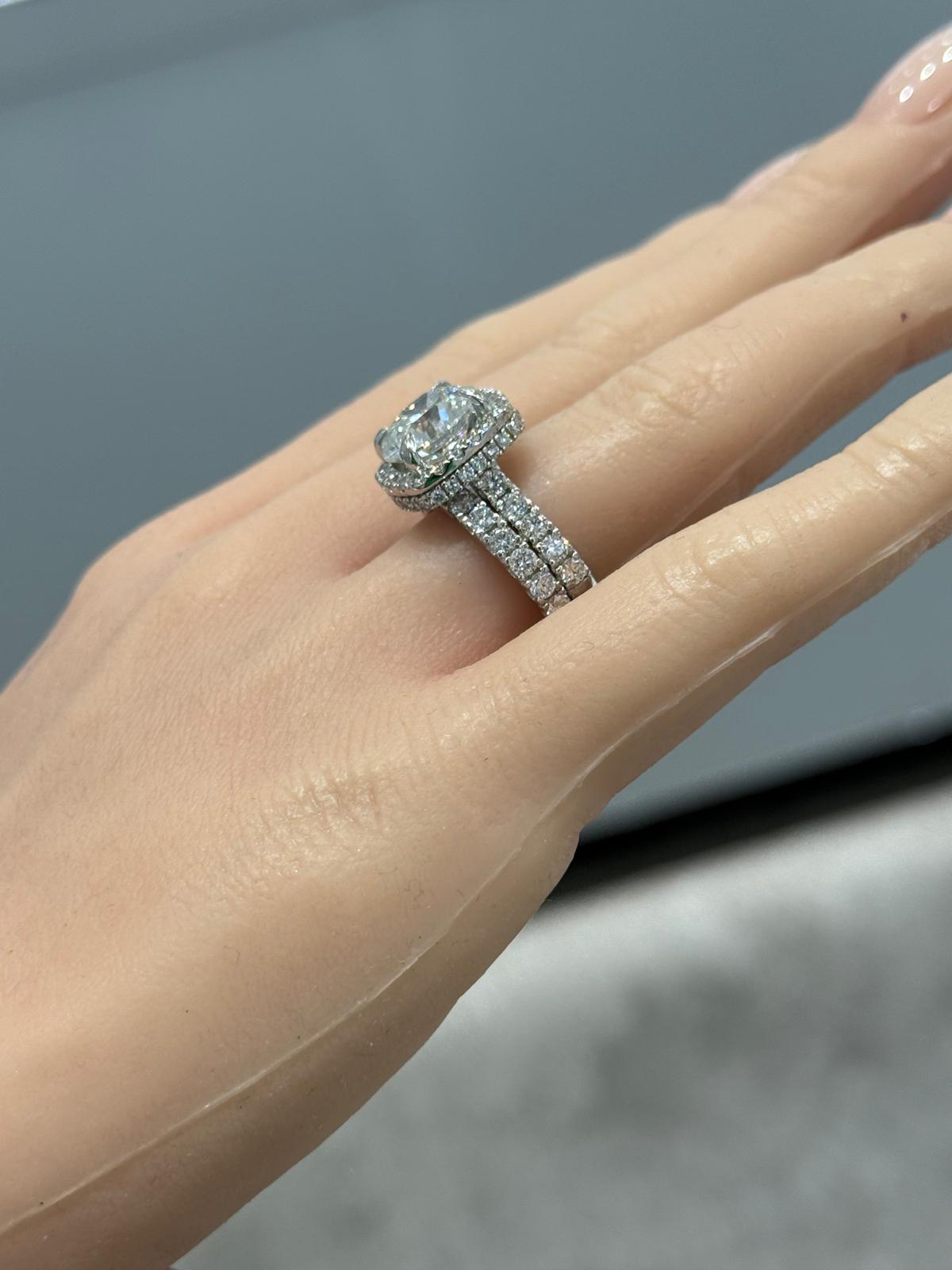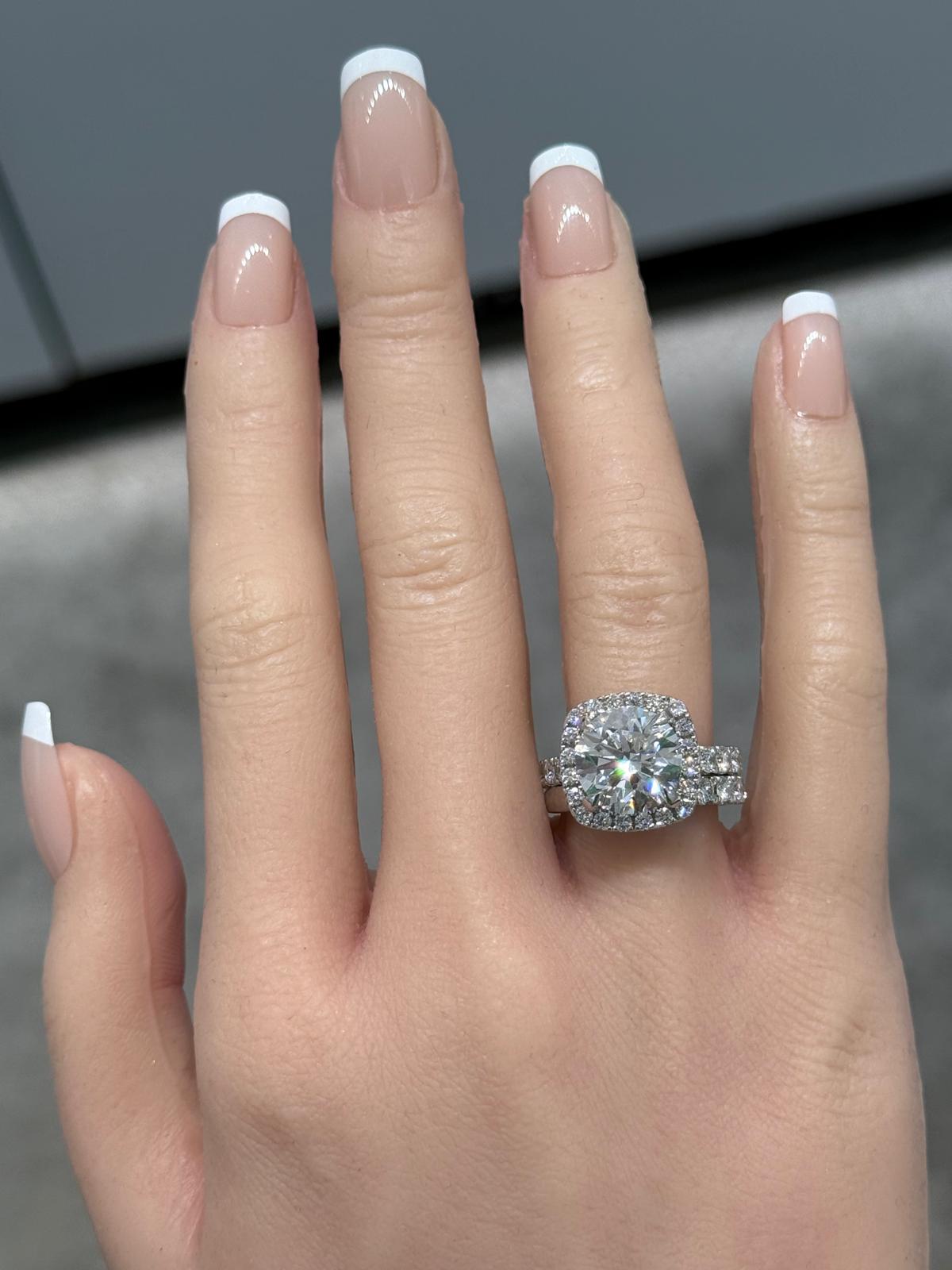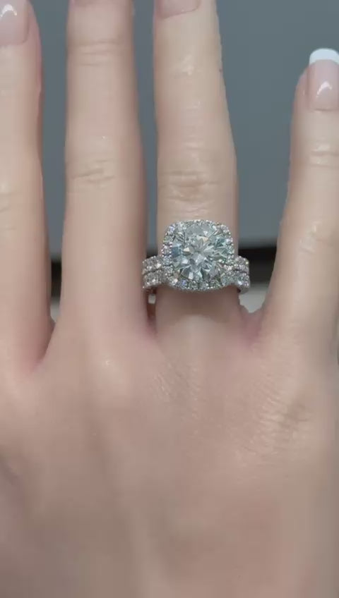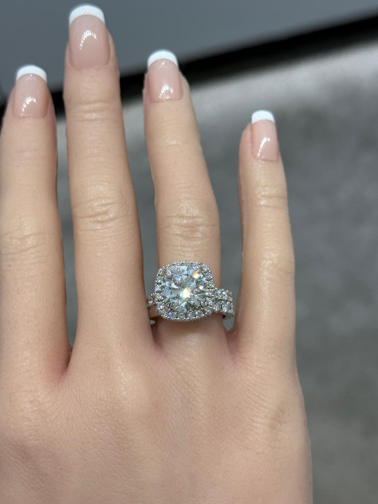 14KT White Gold 7CTW Custom Lab Diamond Bridal Ring-IGI Certified