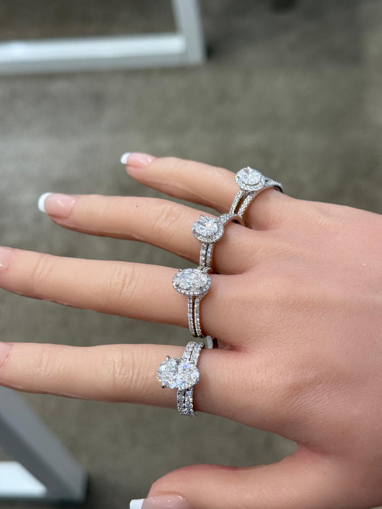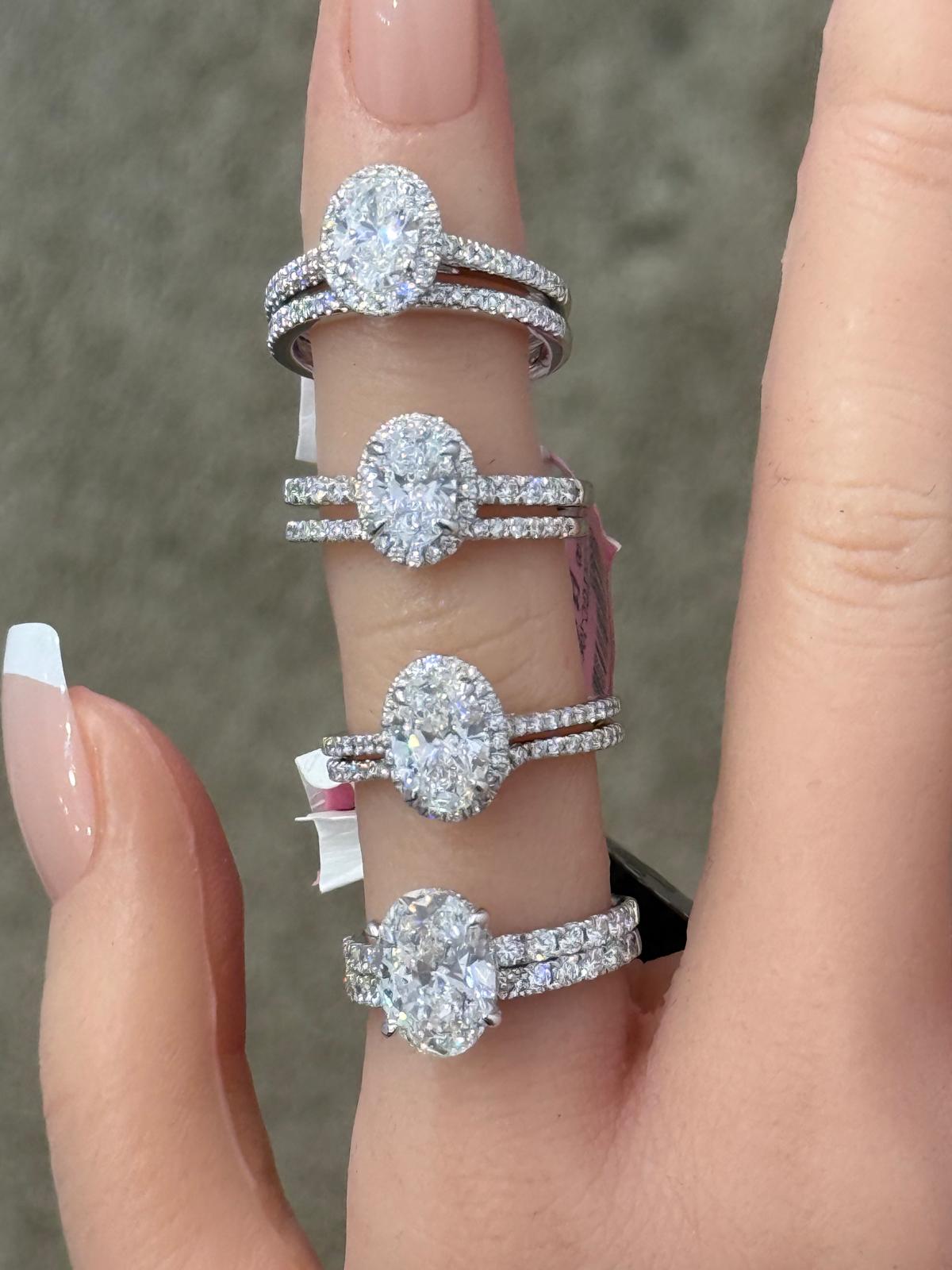14KT White Gold VS2 Oval Lab Diamond Bridal Ring Set - IGI Certified