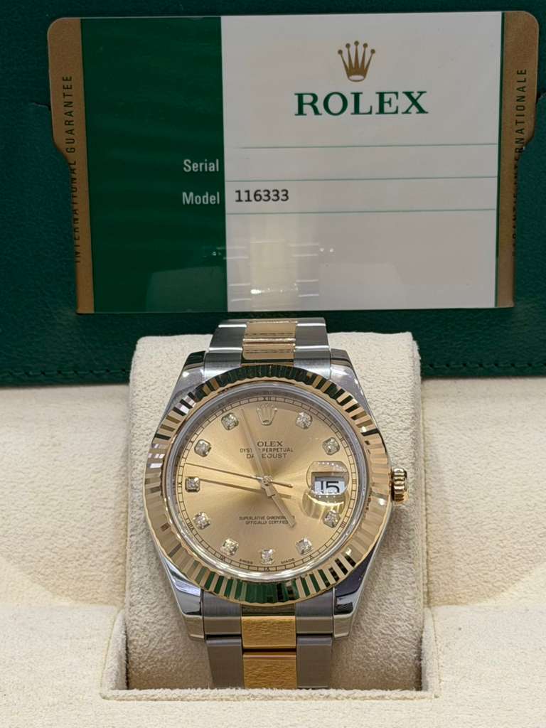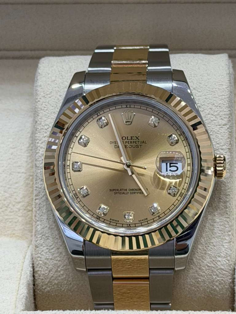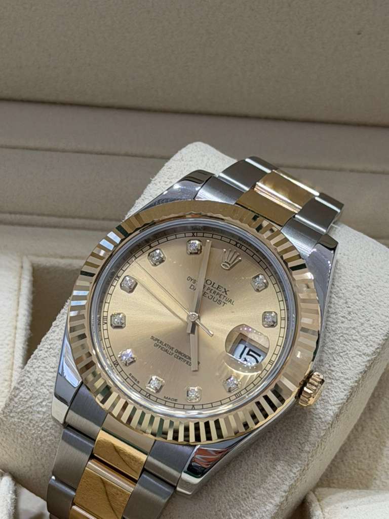 All Original Factory Rolex 41mm DateJust-II Champagne Diamond Dial-2016