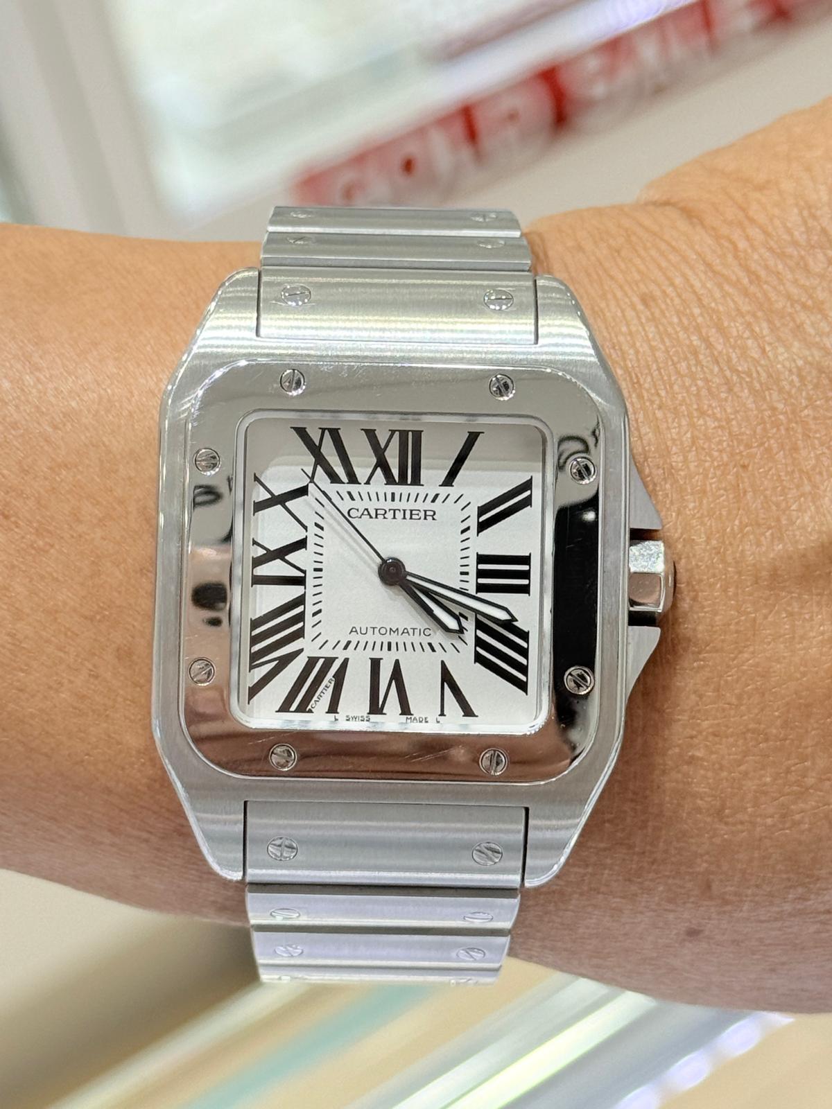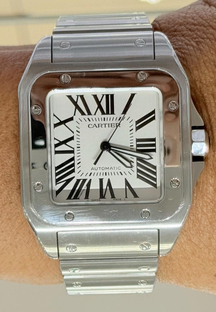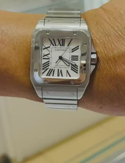 Pre Owned Santos De Cartier XL Watch Black Roman Dial