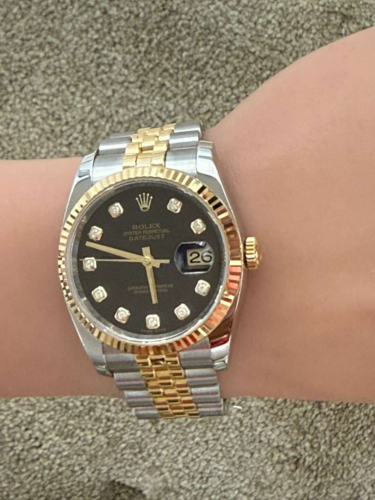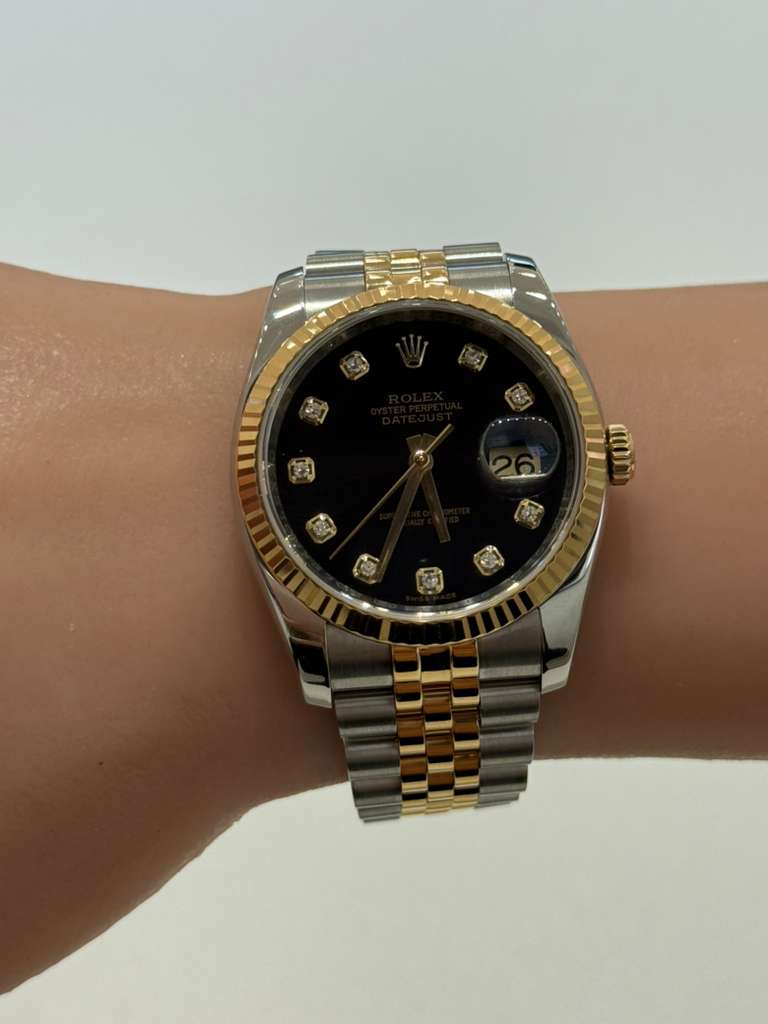 All Original Factory Rolex 36mm DateJust Black Diamond Dial-(W/Card)