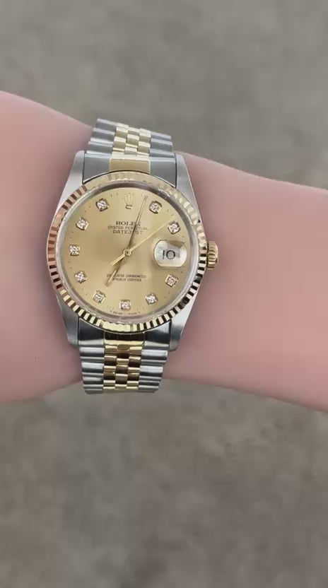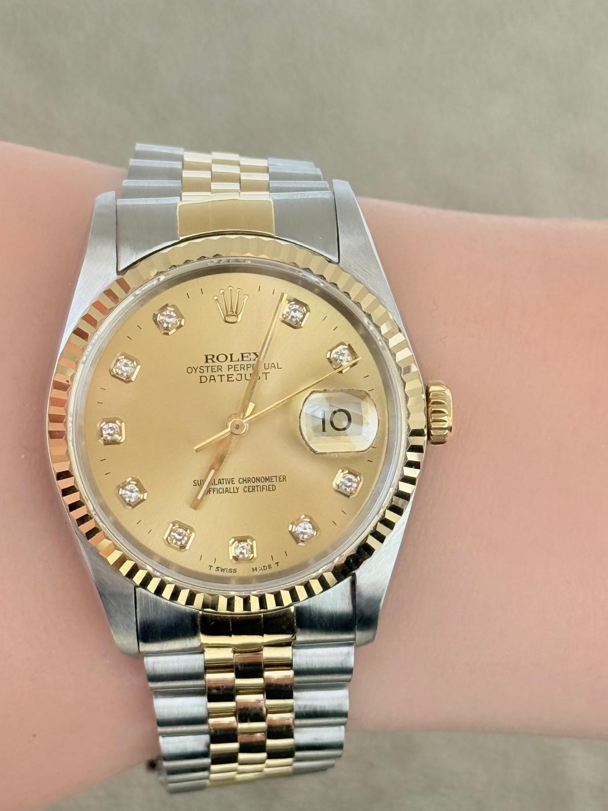 Rolex Pre Owned 36mm DateJust Champagne Diamond Dial-1991