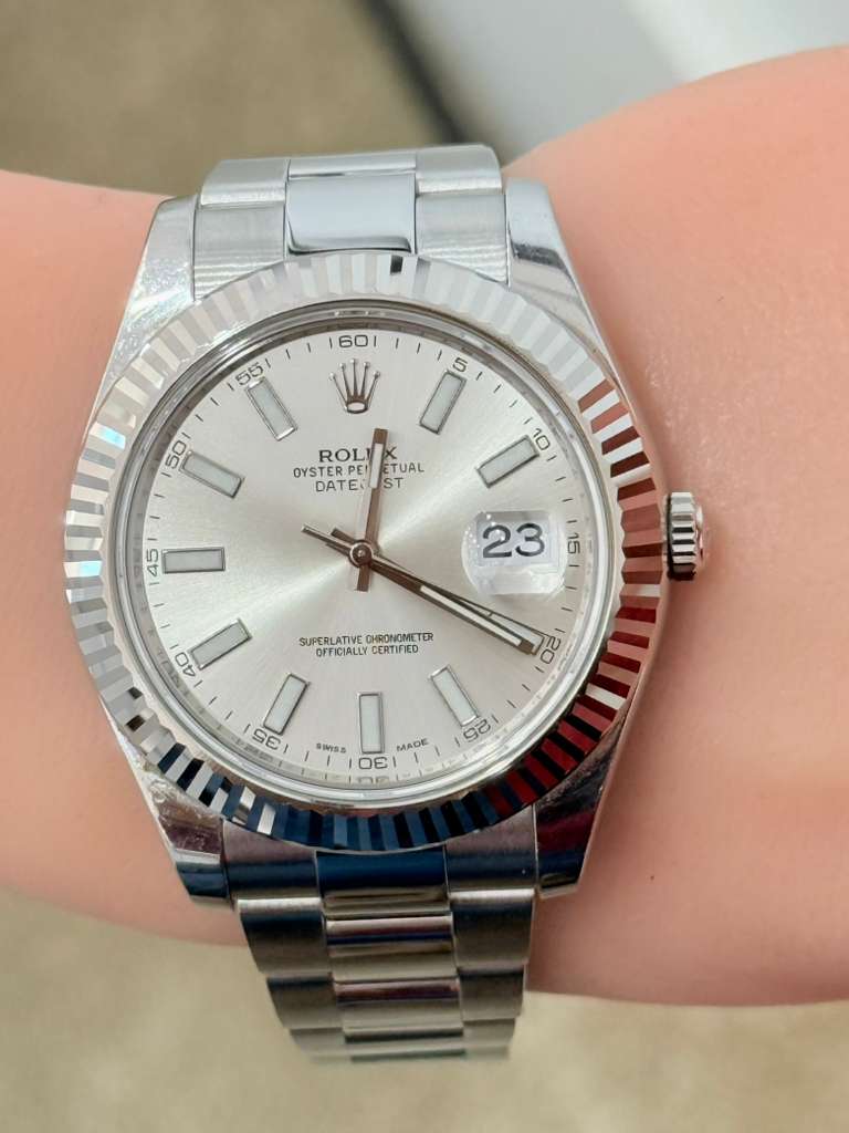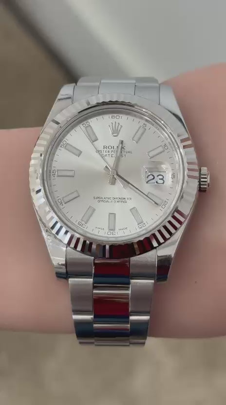 Rolex Pre Owned 41mm DateJust-II Silver Stick Dial-W/Card-2014