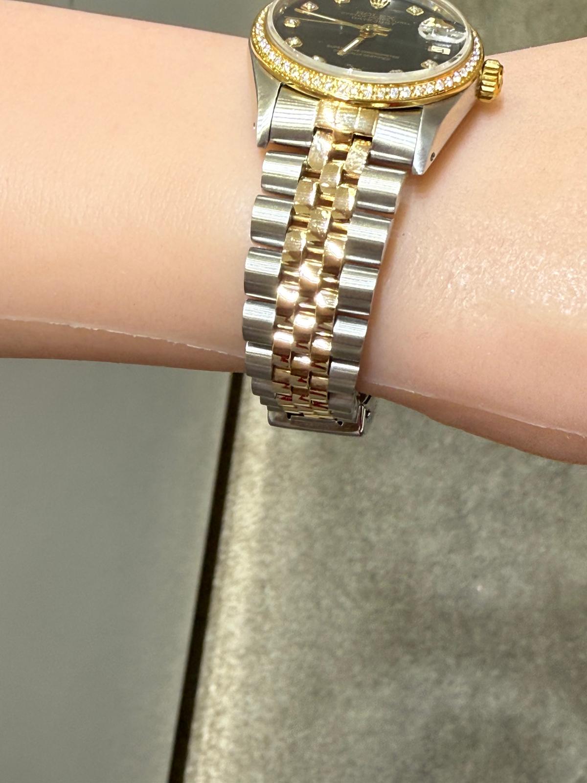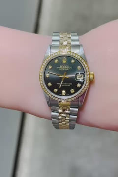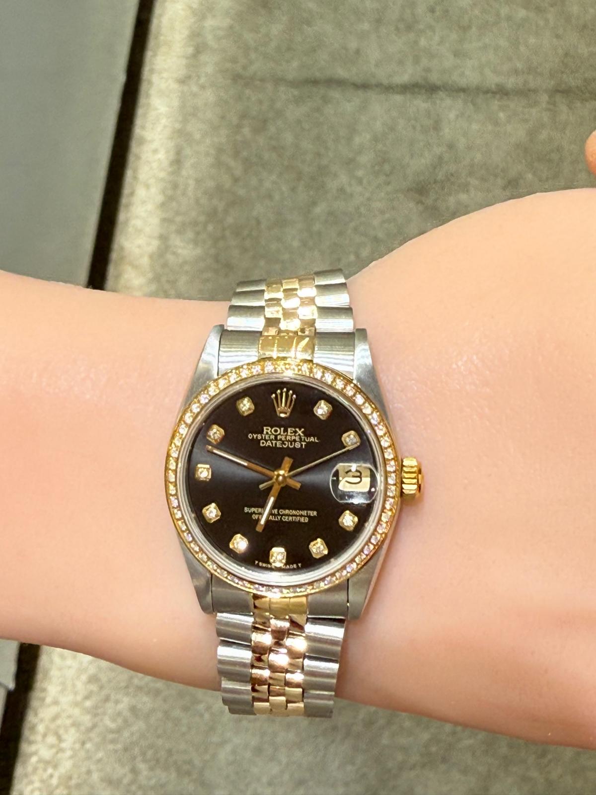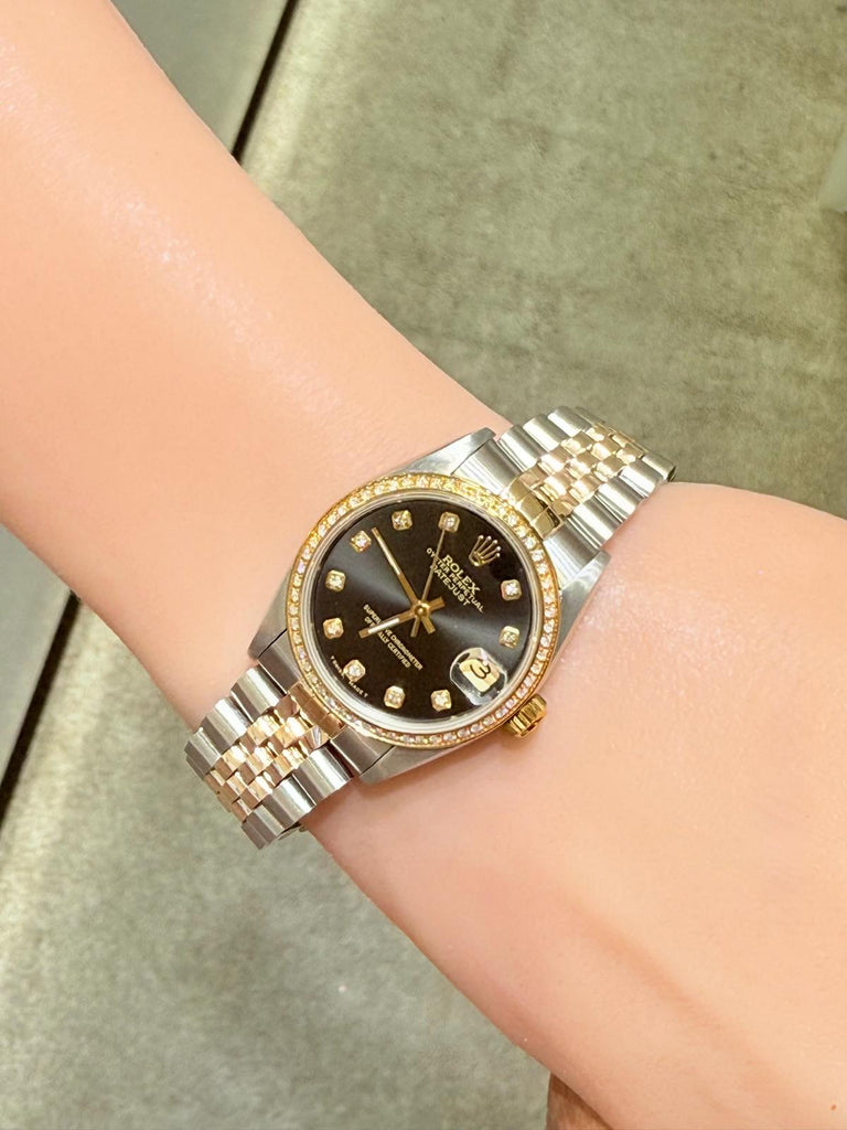 Rolex Pre Owned Ladies 31mm DateJust Black Diamond Dial-1991