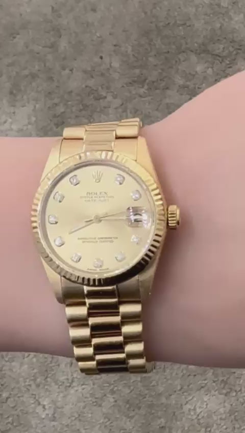 Rolex Pre Owned Ladies 31mm DateJust Presidential Champagne Diamond-1984