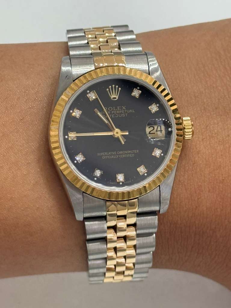 Rolex PreOwned 31mm Ladies DateJust Black Diamond Dial -1988