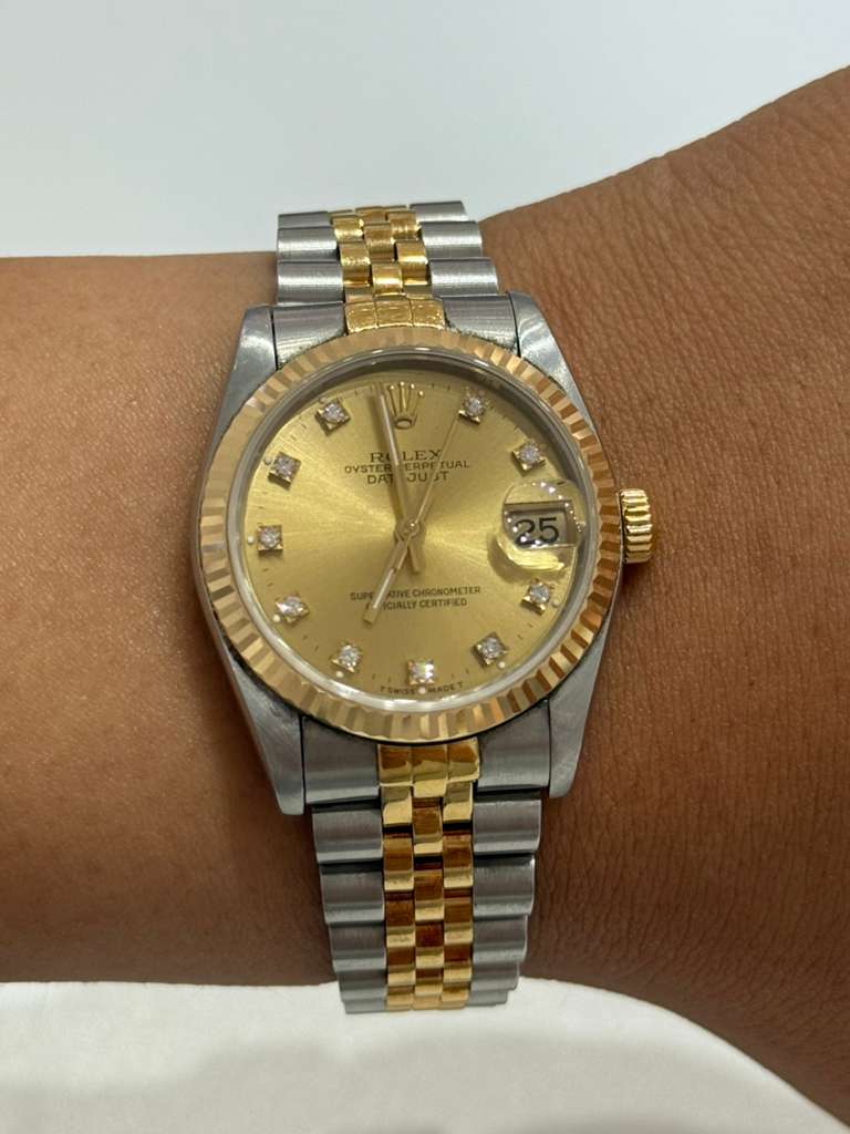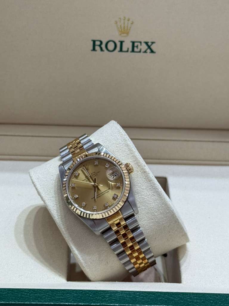 Rolex Preowned Ladies 31mm DateJust Champagne Diamond Dial-Quickset-1995